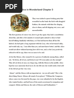 Finally the mouse decides the best way to make everyone dry is to tell a very dry story (that is, he tells an exceptionally boring story about english history). Đăng vào lúc 02:18 02/07/2015 bởi đỗ thị hải yến. Alice in wonderland chapter 1. Alice's adventures in wonderland (commonly shortened to alice in wonderland) is an 1865 novel by english author lewis carroll (the pseudonym of charles dodgson).